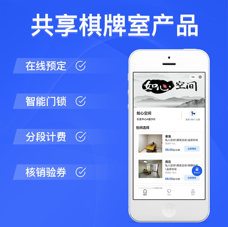 功能:在线选座 智能门锁 分段计费 核销验券